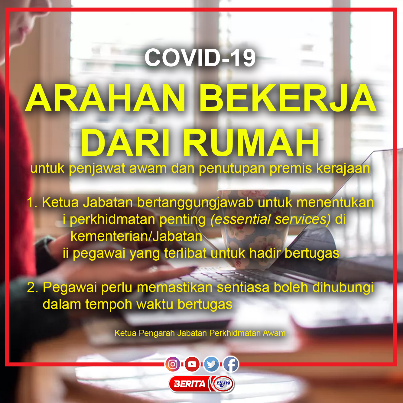 Berita Rtm Al Twitter 17 Mac Arahan Bekerja Dari Rumah Untuk Penjawat Awam Dan Penutupan Premis Kerajaan Jpa Kppa Penjawatawam Beritartm Rtm Https T Co Ohdkurbwuv Twitter